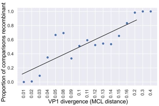 - Posada, D.; Crandall, K.A. Evaluation of methods for detecting recombination from DNA sequences: Computer simulations. Proc. Natl. Acad. Sci. USA 2001, 98, 13757–13762. [Google Scholar] [CrossRef]