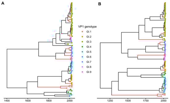 3.4. Temporal Aspects of Norovirus Recombination