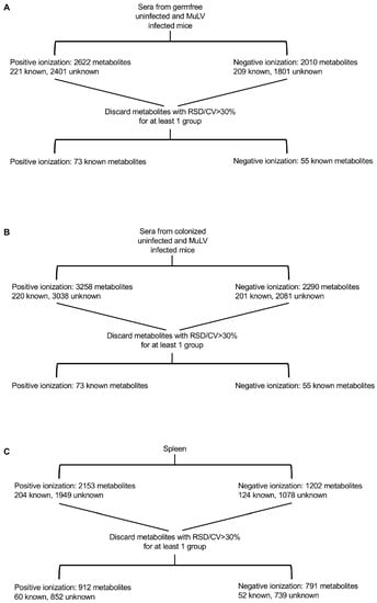 Spring, J.; Beilinson, V.; DeFelice, B.C.; Sanchez, J.M.; Fischbach, M.; Chervonsky, A.; Golovkina, T. Retroviral Infection and Commensal Bacteria Dependently Alter the Metabolomic Profile in a Sterile Organ. Viruses 2023, 15, 386. https://doi.org/10.3390/v15020386