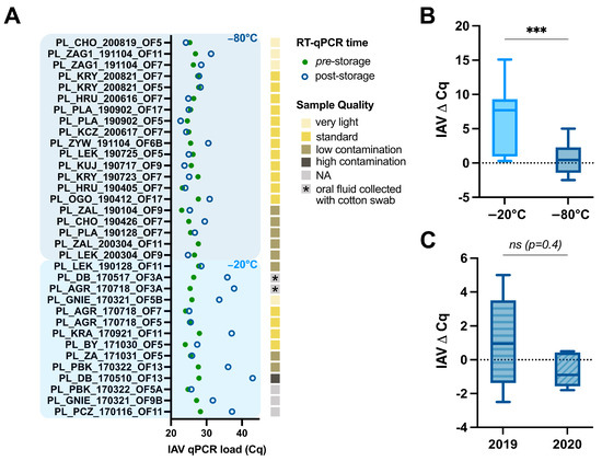 2.2. Assessment of swIAV Detection Using RT-qPCR Pre- and Post-Storage