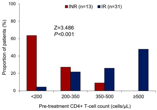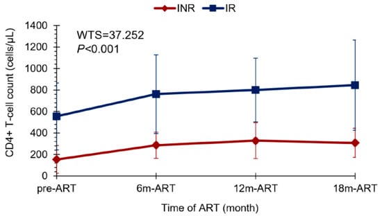 - Guo, F.-P.; Li, Y.-J.; Qiu, Z.-F.; Lv, W.; Han, Y.; Xie, J.; Li, Y.-L.; Song, X.-J.; Du, S.-S.; Mehraj, V.; et al. Baseline Naive CD4+ T-cell Level Predicting Immune Reconstitution in Treated HIV-infected Late Presenters. Chin. Med. J. 2016, 129, 2683–2690. [Google Scholar] [CrossRef]