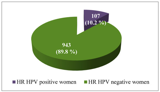 Figure 2. Frequency of HR-HPV positive in the total number of tested women (N = 1050).
