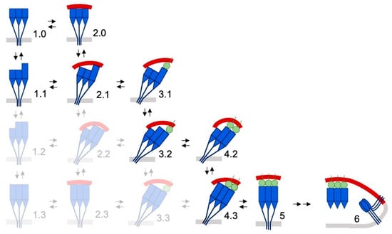 - Marcink, T.C.; Kicmal, T.; Armbruster, E.; Zhang, Z.; Zipursky, G.; Golub, K.L.; Idris, M.; Khao, J.; Drew-Bear, J.; McGill, G.; et al. Intermediates in SARS-CoV-2 spike-mediated cell entry. Sci. Adv. 2022, 8, eabo3153. [Google Scholar] [CrossRef] [PubMed]