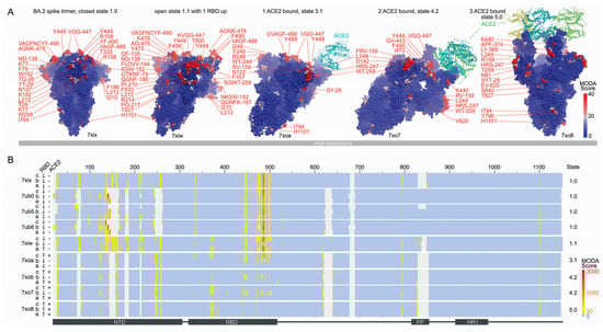 - Gobeil, S.M.; Henderson, R.; Stalls, V.; Janowska, K.; Huang, X.; May, A.; Speakman, M.; Beaudoin, E.; Manne, K.; Li, D.; et al. Structural diversity of the SARS-CoV-2 Omicron spike. Mol. Cell 2022, 82, 2050–2068.e6. [Google Scholar] [CrossRef]