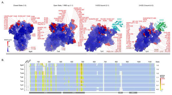 - ACE-2 receptor binding affinity via the RBM of the open state of the spike trimer.