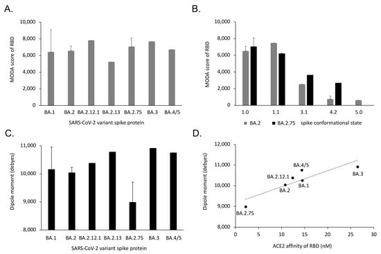 - The D405N and R408S mutations gained in BA.2 eliminate a negative and positive charge exposed in the RBM and balance the overall dipole moment. The former mutation is particularly critical for immune evasion [7], while the latter alters a binding pocket for fatty acid molecules of interest for its potential druggability [45,46,47].