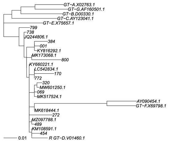 - EL Hadad, S.; Alakilli, S.; Rabah, S.; Sabir, J. Sequence analysis of sub-genotype D hepatitis B surface antigens isolated from Jeddah, Saudi Arabia. Saudi J. Biol. Sci. 2018, 25, 838–847. [Google Scholar] [CrossRef]