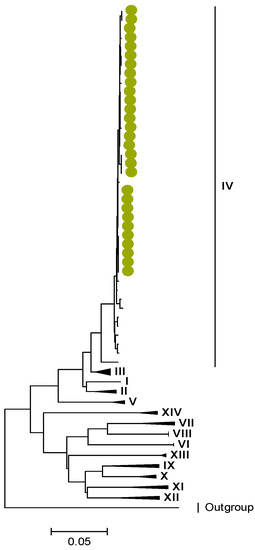 - Edgar, R.C. MUSCLE: Multiple sequence alignment with high accuracy and high throughput. Nucleic Acids Res. 2004, 32, 1792–1797. [Google Scholar] [CrossRef]