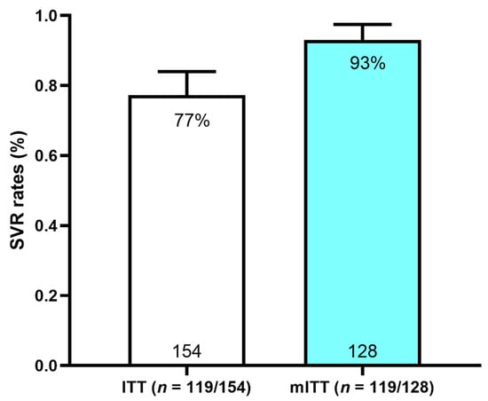 A SVR was achieved in 119/154 (77%) in the ITT and 119/128 (93%) in the mITT populations (Figure 2).