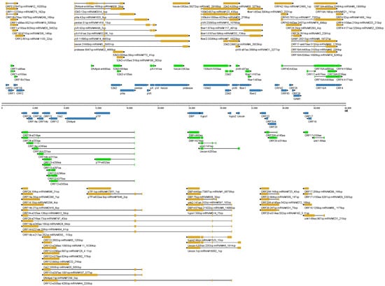Key transcripts controlled by the reverse 6405-nt, 8605-nt, 17,972-nt, 25,327-nt and 29,442-nt promoters. The related annotation and explanation can be found in the legend of Figure 5.