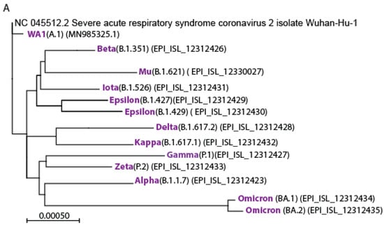 - Harvey, W.T.; Carabelli, A.M.; Jackson, B.; Gupta, R.K.; Thomson, E.C.; Harrison, E.M.; Ludden, C.; Reeve, R.; Rambaut, A.; Peacock, S.J.; et al. SARS-CoV-2 variants, spike mutations and immune escape. Nat. Rev. Microbiol. 2021, 19, 409–424. [Google Scholar] [CrossRef]
