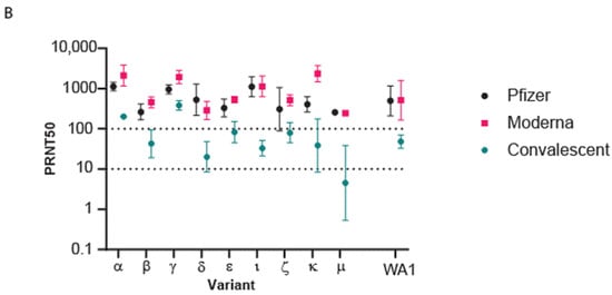 - Garcia-Beltran, W.F.; Lam, E.C.; Denis, K.S.; Nitido, A.D.; Garcia, Z.H.; Hauser, B.M.; Feldman, J.; Pavlovic, M.N.; Gregory, D.J.; Poznansky, M.C.; et al. Multiple SARS-CoV-2 variants escape neutralization by vaccine-induced humoral immunity. Cell 2021, 184, 2372–2383 e9. [Google Scholar] [CrossRef]