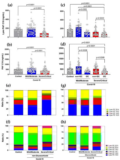 3.3. Diminished Levels of Lyso-PAF and PAF, and Different Ratios in Lyso-PC and Lyso-PE Species in Severe COVID-19 Patients with the Use of GCs