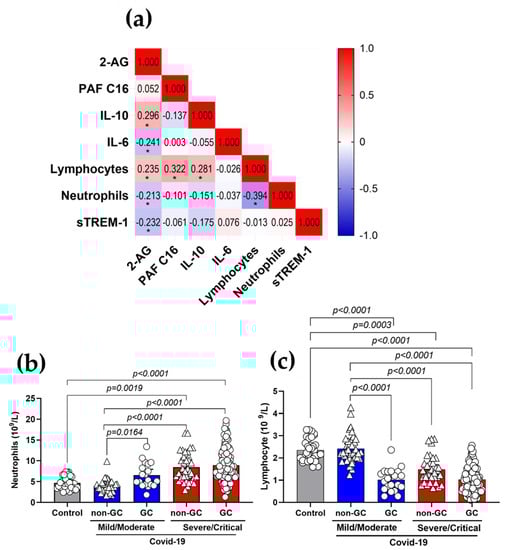 3.5. Plasma 2-AG and PAF Levels Correlated with Inflammatory Markers of COVID-19