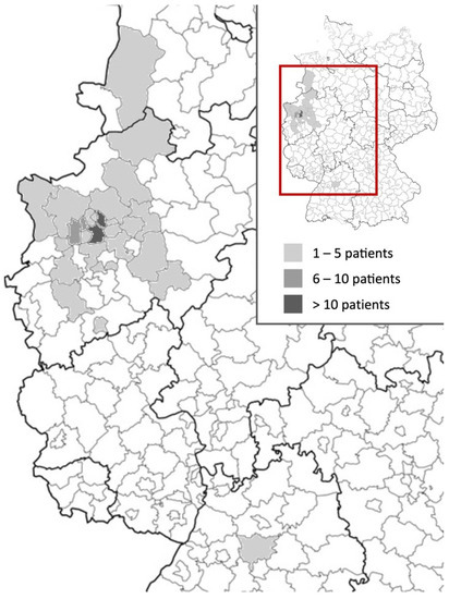 The majority (54%) of patients were referred to our department by pediatricians and originated from across North Rhine-Westphalia and beyond (Figure 3). However, most patients’ residencies had geographic proximity to the hospital.