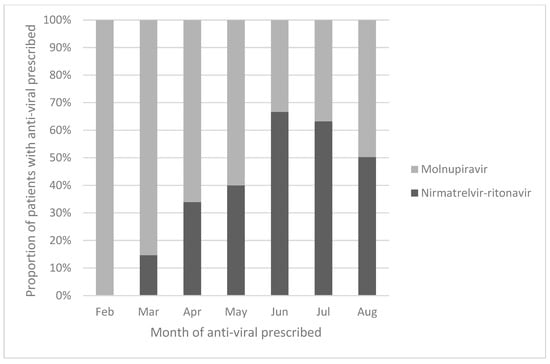 Proportion of patients prescribed nirmatrelvir–ritonavir and molnupiravir in this cohort.