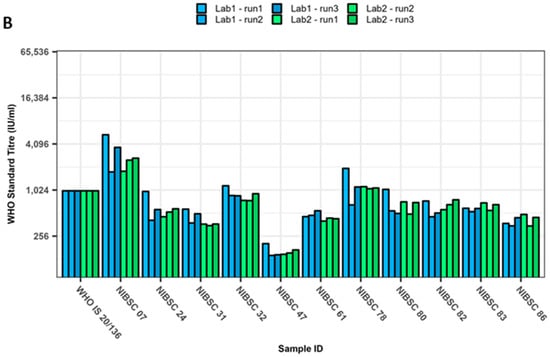 - NIBSC. Working Standard Working Reagent for Anti-SARS-CoV-2 Immunoglobulin NIBSC Code: 21/234. 2022. Available online: https://www.nibsc.org/documents/ifu/21-234.pdf (accessed on 12 December 2022).