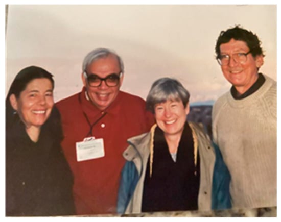 From right to left, Martin Pato, Geneviève Maenhaut, Nick Cozarelli and Ariane Toussaint (taken by Pat Higgins at a Keystone meeting in Santa Fe in the 1990s).