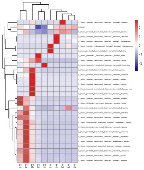 The fecal samples of 50 domestic dogs were collected from pet hospitals located in the urban districts of Jinhua City, Zhejiang Province. The dogs were separated into two groups: a healthy dogs group (group H) and a dogs with diarrhea group (group D). All the fecal samples were collected in sterile cryotubes and stored at −80 °C for further analyses.