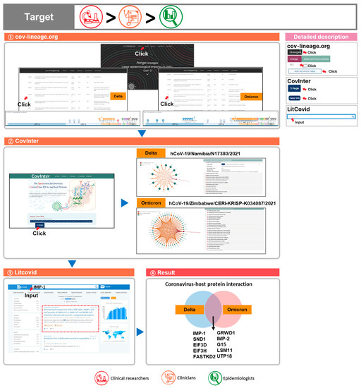 Comprehensive utilization of COVID-19 databases 2. To analyze the differences between the two lineages (Delta b.1.617.2 and Omicron BA.1) and find proteins that interact with the variants, the following process was carried out.