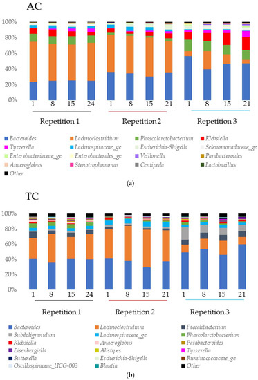 - Van Den Abbeele, P.; Grootaert, C.; Marzorati, M.; Possemiers, S.; Verstraete, W.; Gérard, P.; Rabot, S.; Bruneau, A.; Aidy Ei, S.; Derrien, M.; et al. Microbial community development in a dynamic gut model is reproducible, colon region specific, and selective for bacteroidetes and Clostridium cluster IX. Appl. Environ. Microbiol. 2010, 76, 5237–5246. [Google Scholar] [CrossRef] [PubMed]