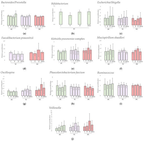 3.4. Evolution of Target Bacteria Followed by qPCR