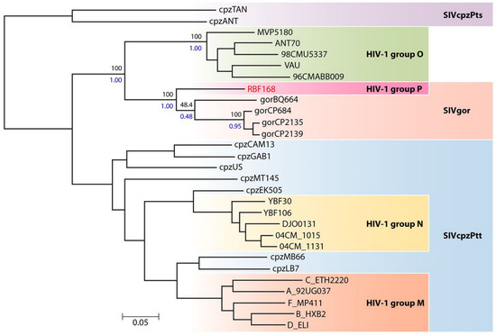 - Vallari, A.; Holzmayer, V.; Harris, B.; Yamaguchi, J.; Ngansop, C.; Makamche, F.; Mbanya, D.; Kaptué, L.; Ndembi, N.; Gürtler, L.; et al. Confirmation of Putative HIV-1 Group P in Cameroon. J. Virol. 2011, 85, 1403–1407. [Google Scholar] [CrossRef] [PubMed]