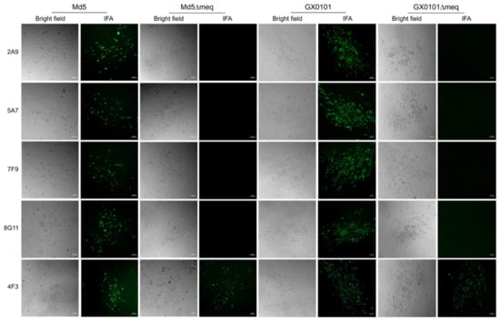 2.5. Screening and Characterization of Meq-Specific Antibodies