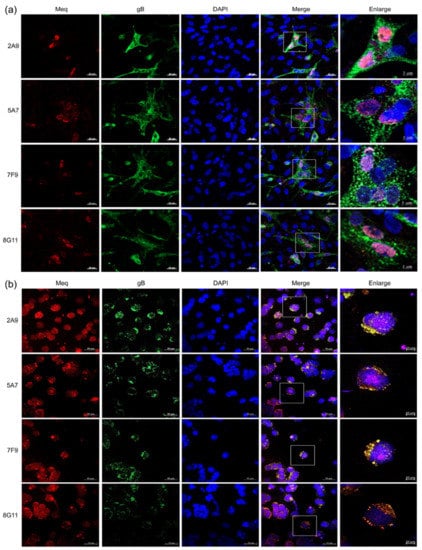 3.4. Confocal Analysis of the Expression of Meq Using Meq-Specific Antibodies