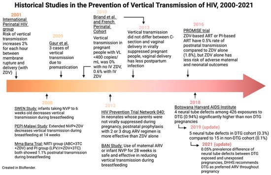 Historical studies in the prevention of vertical transmission of HIV, 2000–2021. Created in BioRender.com.