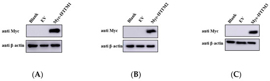 All plasmids needed in this study were generated and preserved in our laboratory. Fragments encoding human IFITM1, IFITM2, and IFITM3 were generated from HEK293 cDNA and utilized specific primers. After digestion and extraction, genes were cloned into expression plasmid pCMV-Myc. The primer sequences used in this study are available upon request. All plasmids were verified using sequencing.