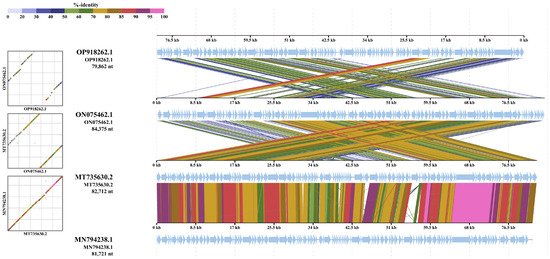 | Genome Size (bp) | 79,862 | 81,509 | 286,284 | 48,719 | 81,566 | 82,960 |