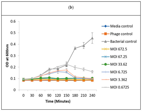 2.8. In Vitro Determination of Optimum Multiplicity of Infection (MOI) for Determining Phage Infectivity Potential