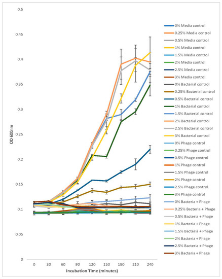 2.11. Vibriophage-ϕLV6 Activity against Luminescent V. harveyi Host LV6 at Different Salt Gradients