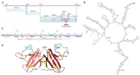 - Valcarcel, A.; Bensussen, A.; Álvarez-Buylla, E.R.; Díaz, J. Structural Analysis of SARS-CoV-2 ORF8 Protein: Pathogenic and Therapeutic Implications. Front. Genet. 2021, 12, 693227. [Google Scholar] [CrossRef] [PubMed]