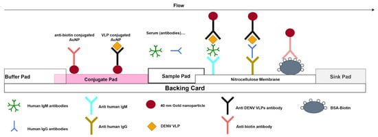 Schematic illustration of the Dengue NS1 rapid antigen test.