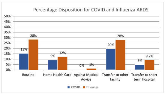 Distribution of disposition of Influenza ARDS in National Inpatient Discharges in 2020.