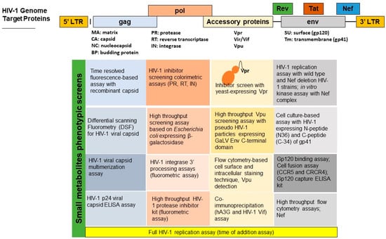 - Richter, S.N. Strategies for inhibiting function of HIV-1 accessory proteins: A necessary route to AIDS therapy. Curr. Med. Chem. 2009, 16, 267–286. [Google Scholar] [CrossRef]