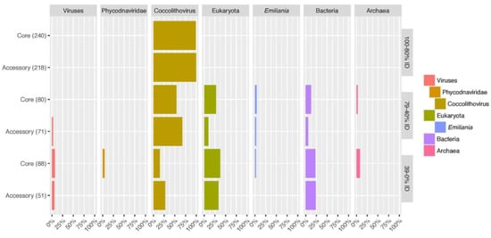 2.1. Pangenome Analysis of the Genus Coccolithovirus and Comparison to Chloroviruses and Prasinoviruses