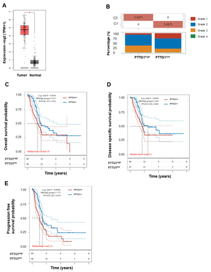 Pituitary tumor-transforming gene 1 (PTTG1) regulates sister chromatid separation during mitosis [1]. It also involves several cellular processes, such as DNA damage repair, apoptosis, and metabolism [2]. Furthermore, PTTG1 is overexpressed and oncogenic in many kinds of tumors, such as prostate, breast, liver, lung, and seminoma [3,4,5,6,7]. PTTG1 promotes tumor cell proliferation, invasiveness, epithelial–mesenchymal transition, and angiogenesis [8,9,10]. Given the critical tumor-promoting role of PTTG1 in tumor progression, it is necessary to comprehensively understand its potential in therapy.