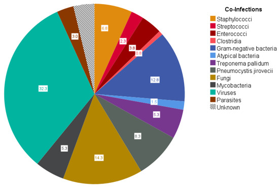 Bacterial and fungal co-infections were detected using microbiological cultures of patient samples (i.e., blood cultures, respiratory secretion cultures, stool cultures, and cerebrospinal fluid cultures). If suspected, detection of