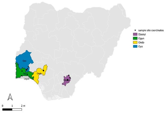 Map of Nigeria showing the sampling sites.