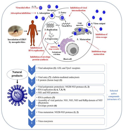 - Fong, Y.D.; Chu, J.J.H. Natural products as Zika antivirals. Med. Res. Rev. 2022, 42, 1739–1780. [Google Scholar] [CrossRef]