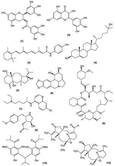 The research of natural products (NPs) has been proved to be a valid strategy for developing important drugs currently used in therapy, and they also play an important role in the discovery of new antiviral agents [,,,,,]. In this context, the search for compounds active against ZIKV is relevant and may result in the development of new antivirus drugs to be adopted for the prevention and treatment of future generations. Several classes of NPs have been described in the literature as active against ZIKV in different experimental models, including polyphenols, triterpenes, alkaloids, and steroids, among others. Therefore, the goal of the present work was to undertake a comprehensive revision on NPs that have been reported to exhibit potential effect against ZIKV by using predictive computational tools, as well as by in vitro and in vivo models of viral infection, along with their mechanisms of antiviral activity.