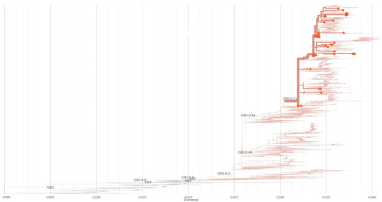 Similarly, all 92 Slovenian HRSV-B contained the 60-nucleotide-long duplicated region in the G gene and were closely related to the English BA strain (GeneBank acc. no. KY249660), and all of them, regardless of the year of collection, were further classified by Nextclade as lineage GB5.0.5a (Table 1 and Figure 5).