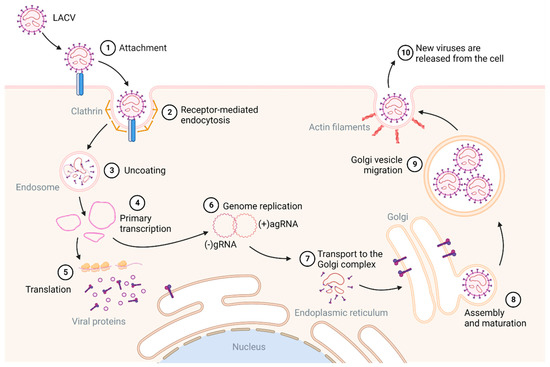 - Windhaber, S.; Xin, Q.; Lozach, P.-Y. Orthobunyaviruses: From Virus Binding to Penetration into Mammalian Host Cells. Viruses 2021, 13, 872. [Google Scholar] [CrossRef]
