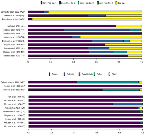 - Villeneuve, C.-A.; Buhler, K.J.; Iranpour, M.; Avard, E.; Dibernardo, A.; Fenton, H.; Hansen, C.M.; Gouin, G.-G.; Loseto, L.L.; Jenkins, E.; et al. New Records of California Serogroup Virus in Aedes Mosquitoes and First Detection in Simulioidae Flies from Northern Canada and Alaska. bioRxiv 2021. [Google Scholar] [CrossRef]