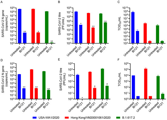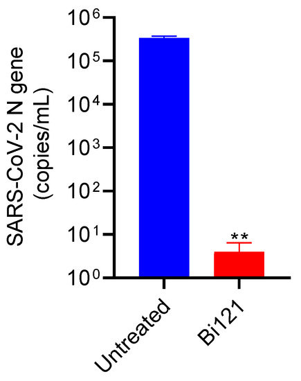 Chicago/Turabian StyleSubhadra, Bobban, Ragini Agrawal, Virender Kumar Pal, Agnes-Laurence Chenine, Jeffy George Mattathil, and Amit Singh. 2023. "Significant Broad-Spectrum Antiviral Activity of Bi121 against Different Variants of SARS-CoV-2" Viruses 15, no. 6: 1299. https://doi.org/10.3390/v15061299