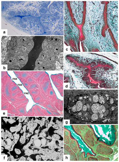 - Olah, I.; Glick, B.; McCorkle, F.; Stinson, R. Light and electron microscope structure of secretory cells in the medulla of bursal follicles of normal and cyclophosphamide treated chickens. Dev. Comp. Immunol. 1979, 3, 101–115. [Google Scholar] [CrossRef]
