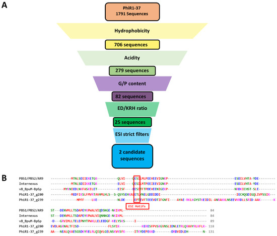 53]) outputs were obtained. Thus, the filter pipeline was serially modified to be more lenient by removing filters ad hoc in turn, and two output sequences were returned when the glycine/proline residue count filter was inactivated; these sequences originated, respectively, from the uracil-DNA